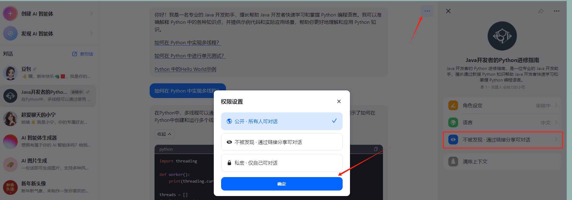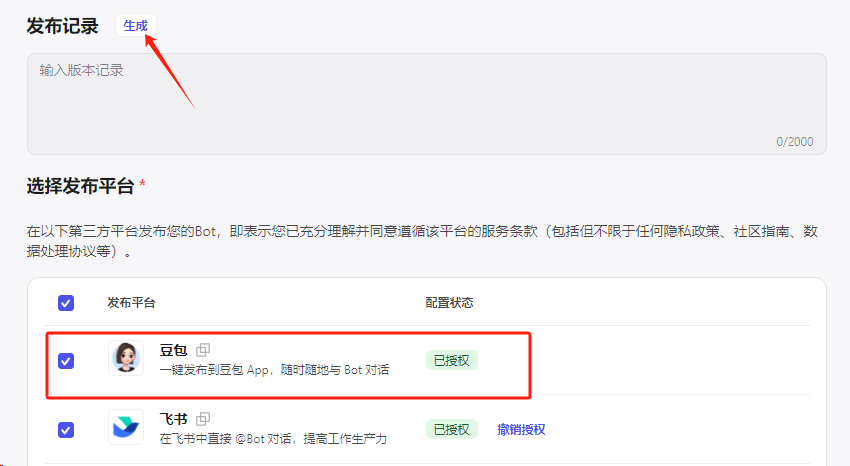 当我最初开始使用时,并没有豆包平台供选择,我只能将其发布在飞书上进行使用。最近,豆包进行了授权更新,且默认设置为可用,因此我想分享给大家如何充分利用这一更新。