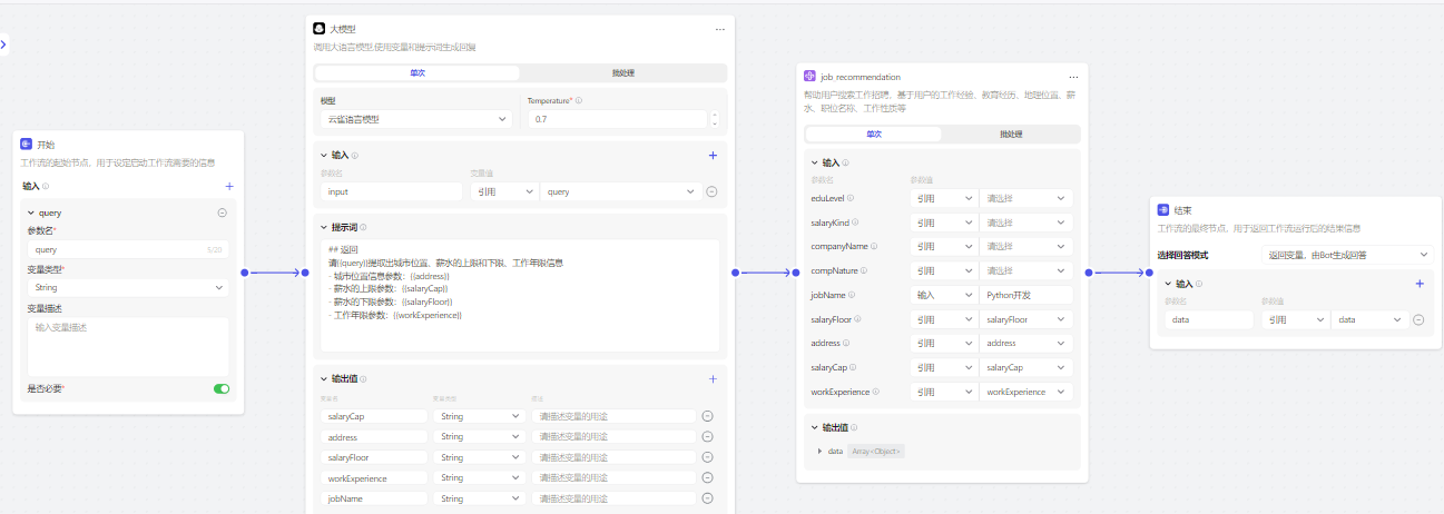 在完成工作时,不必局限于单一工作流程,你可以添加多个工作流程。只需合理设置prompt以确定调用时机,比如除了面试准备,你还可以增加一个用于查询招聘信息的工作流程,以便了解当前行业形势。