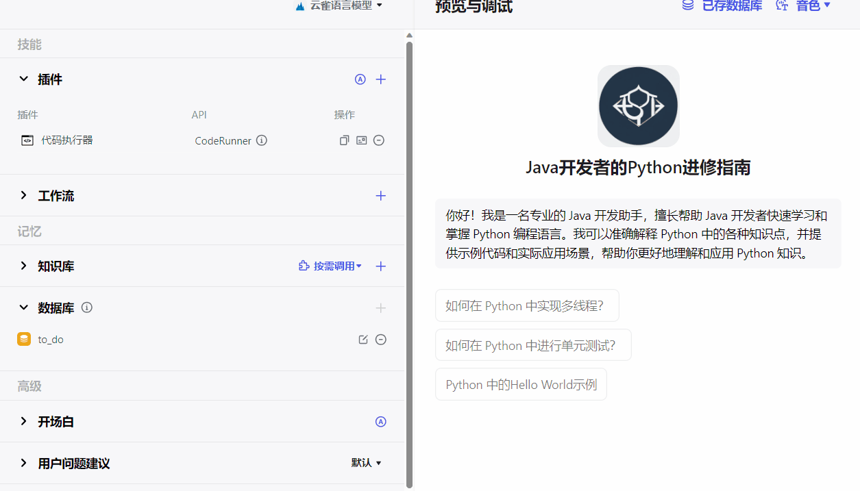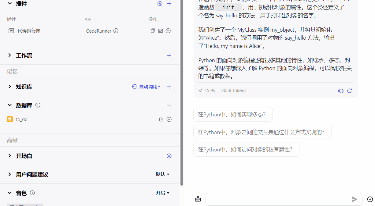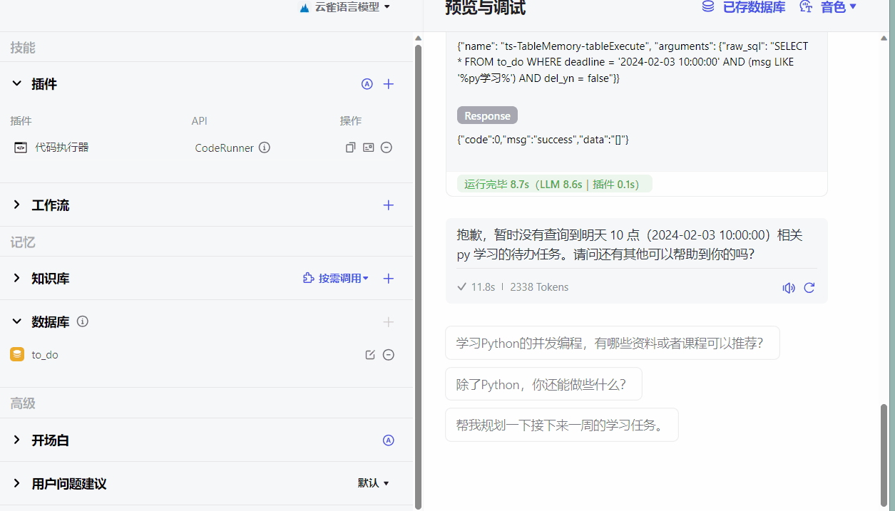 扣子是一个非常全面的工具,它能够帮助你轻松地完成整个流程,从知识库的建立到插件的使用,再到最终的数据库操作,它都能完美地涵盖。尤其是数据库的应用,你可以将它作为你的知识点进行记录和保存,这样可以更好地帮助你学习和回顾。