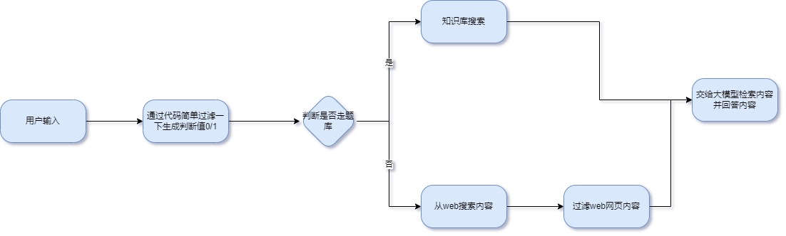 废话不多说,我简单介绍一下如何我将工作流应用到实际情境中。考虑到面试题通常具有时效性,我认为如果大型模型所使用的训练数据不是最新的,可能会导致向用户提供一些过时的面试题,从而浪费时间。因此,我使用工作流提供了两种解决方法:一种是利用我的题库,另一种是通过web实时搜索面试题。以下是有关我的工作流的详细信息:
