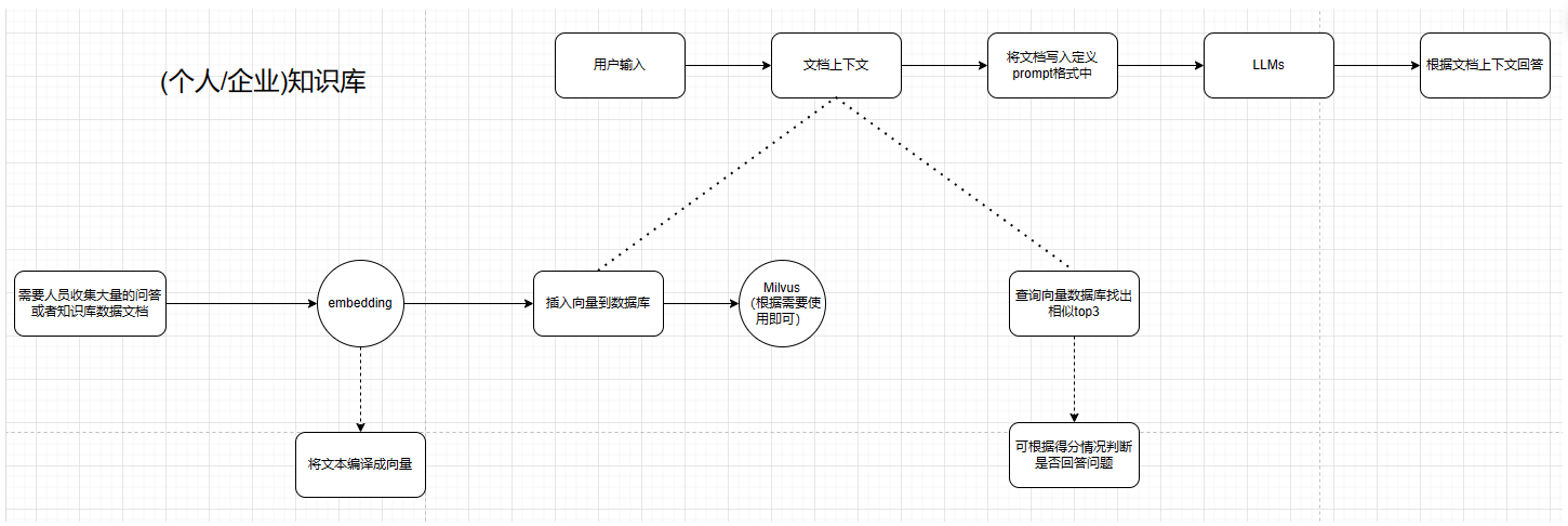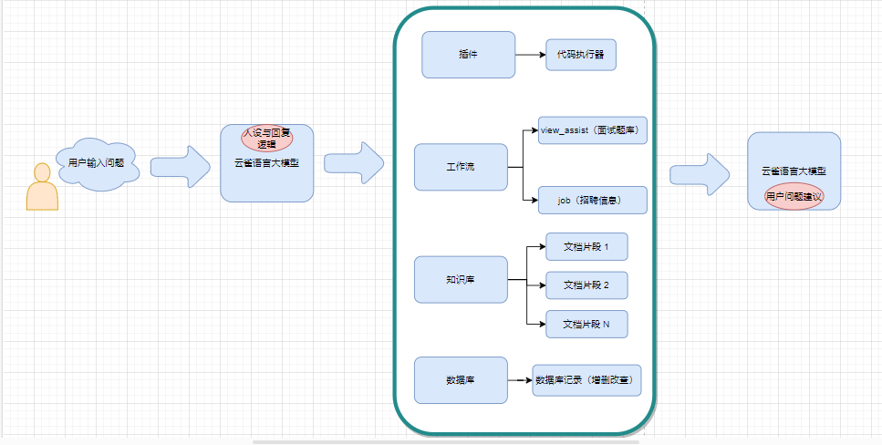 我已经把那幅图画出来,并告诉你这个知识库何时开始发挥作用。当与AI助手进行交流时,我希望能够将相关的知识库片段一同提交,以便提供更丰富的背景信息,从而优化提问的质量。