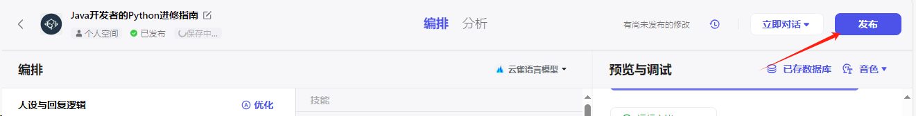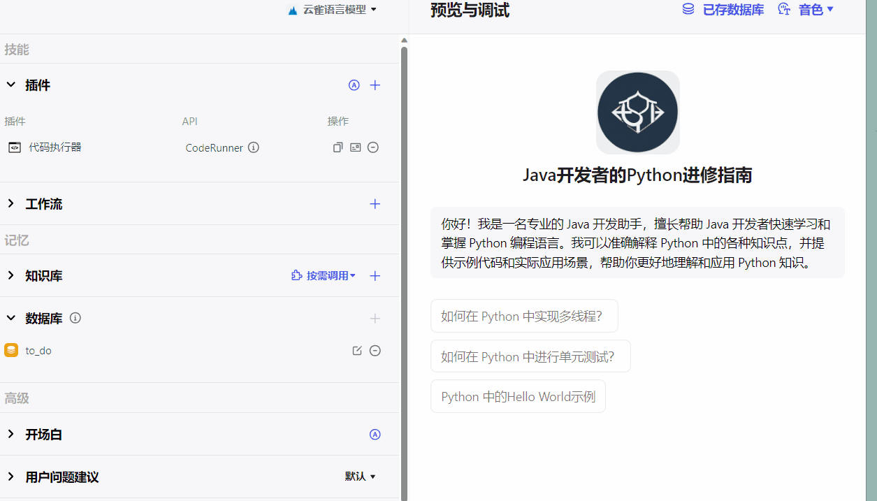 本文将带领你从一个简单的AI Agent逐步发展成为一个Java转型学习助手。通过应用知识库、数据库和插件工作流等技术手段,我将满足你对学习笔记、文章知识库、待办事项数据库、面试题库以及行业招聘信息的需求。如果你还有更加创新的点子,不妨将其交给像你一样对此感兴趣的人来实现。让我们一起探索,将智能技术与教育领域相结合,打造出更加智能、便捷的学习与咨询体验。