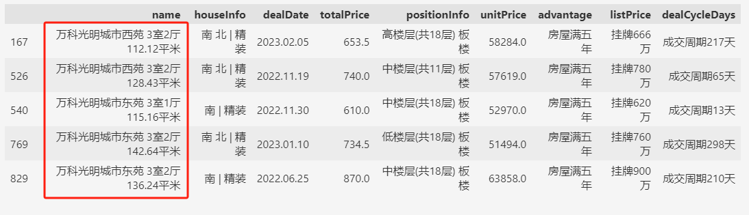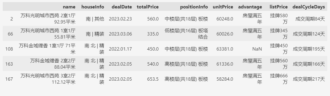 df.query('name.str.contains("万科.*3室")').head(5)