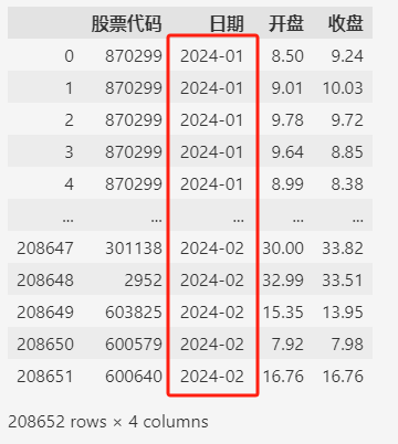 data = df.loc[:, ["股票代码", "日期", "开盘", "收盘"]]