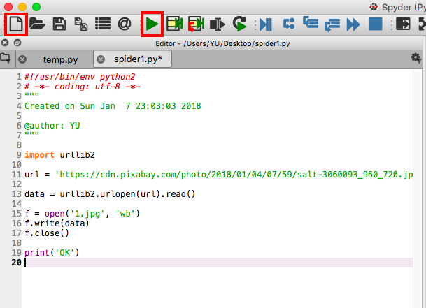 等待几秒钟,Spyder的右侧输出OK,说明图片下载成功。