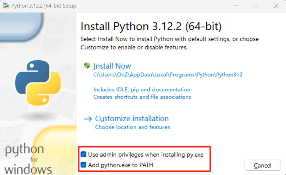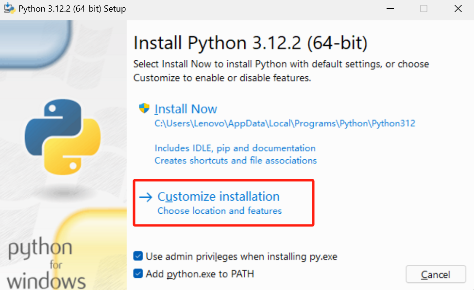 (1)双击打开 “python-3.12.2-amd64.exe”