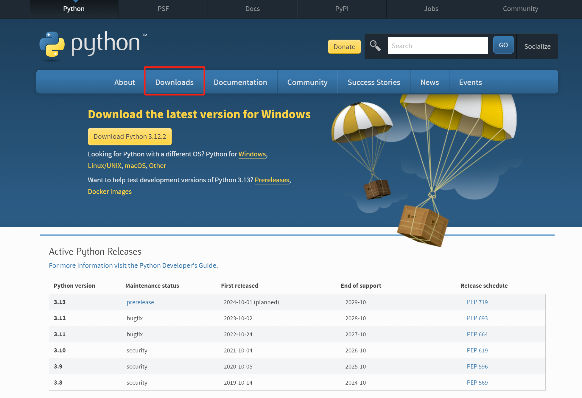(1)进入Python官网:https://www.python.org/