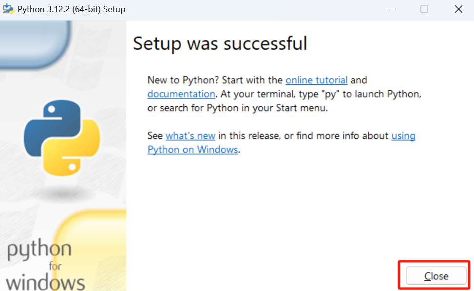 点击 “Close” 按钮关闭安装界面。