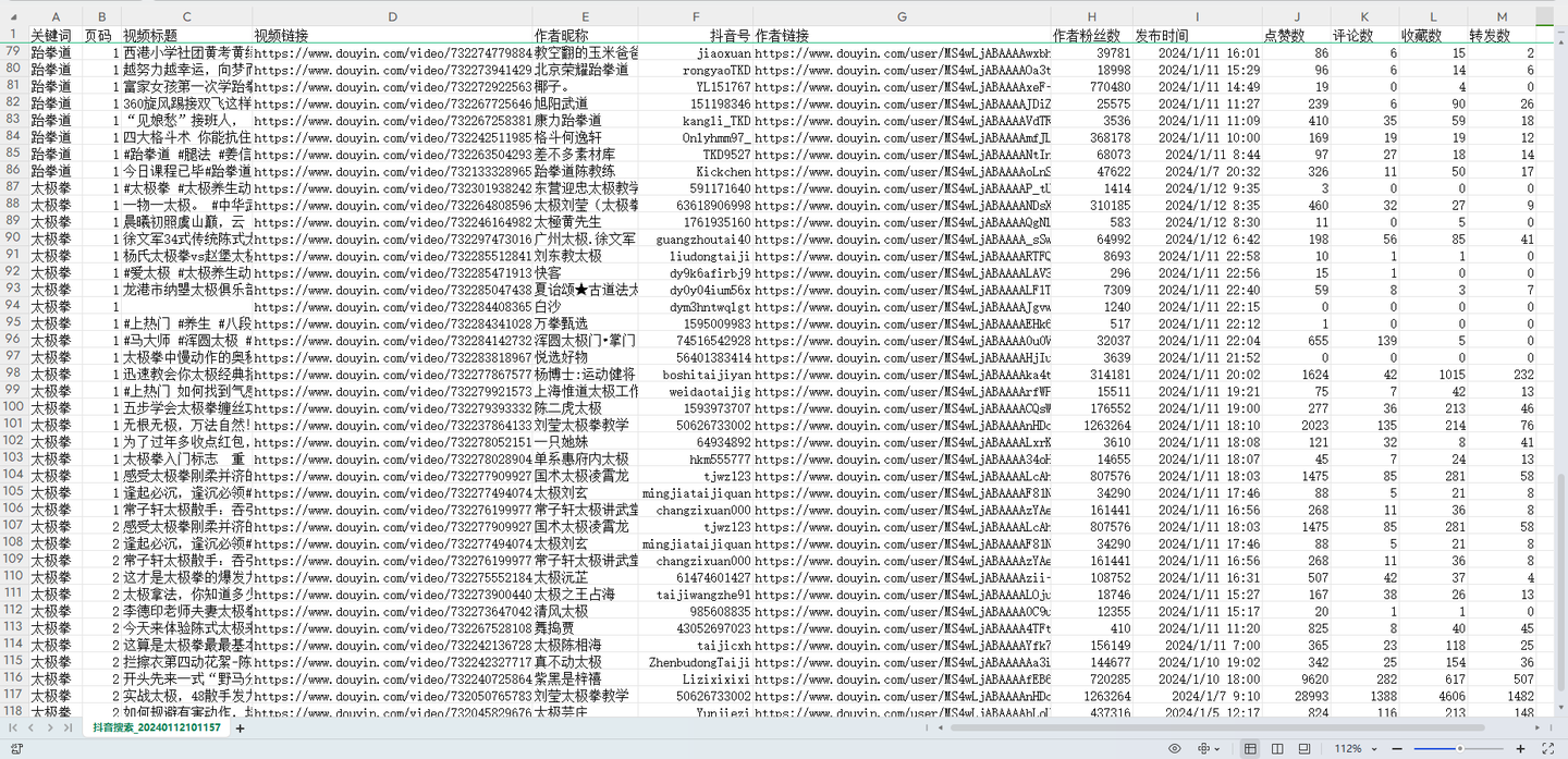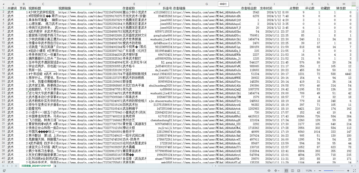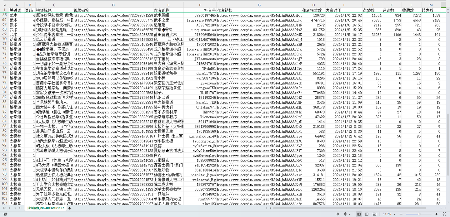 用python开发的爬虫采集软件,可自动按关键词抓取抖音视频数据。