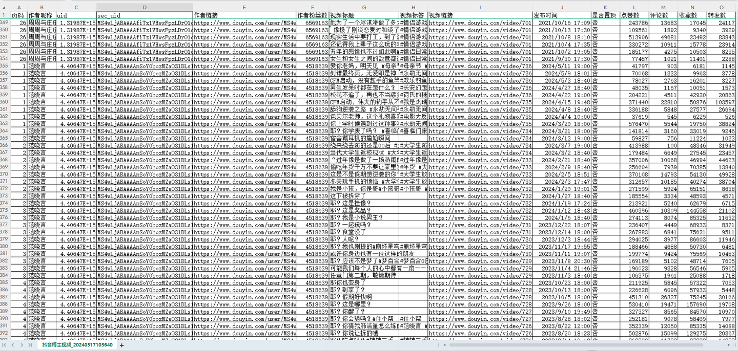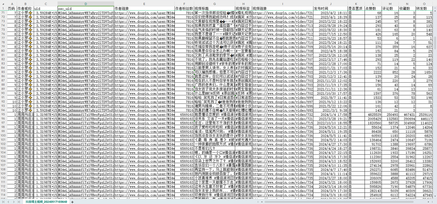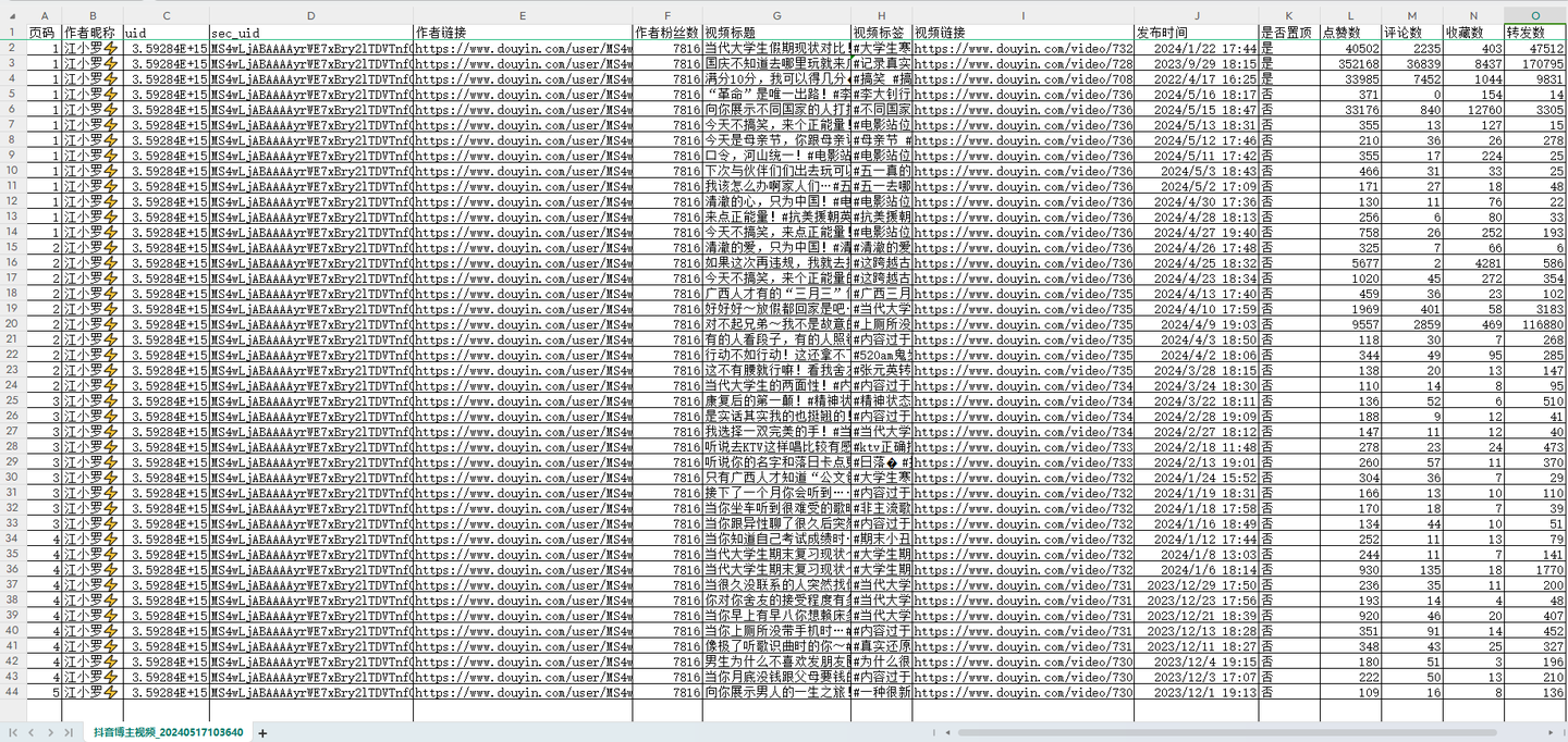 用python开发了一个抖音爬虫采集软件,可自动按博主抓取其已发布视频数据。