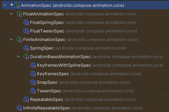 targetValue是没有默认值的,表示动画的目标值。animationSpec动画规格,这里有一个默认值,实际上就是这个参数决定了动画的执行逻辑。lable这个参数是为了区别在 Android Studio 中进行动画预览时,区别其它动画的。finishedListener可以用来监听动画的结束。