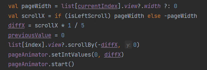如图,假设0切换到3,那么0页面不动,3页面会从右边盖上来,并且从五分之一的位置开始平移过去