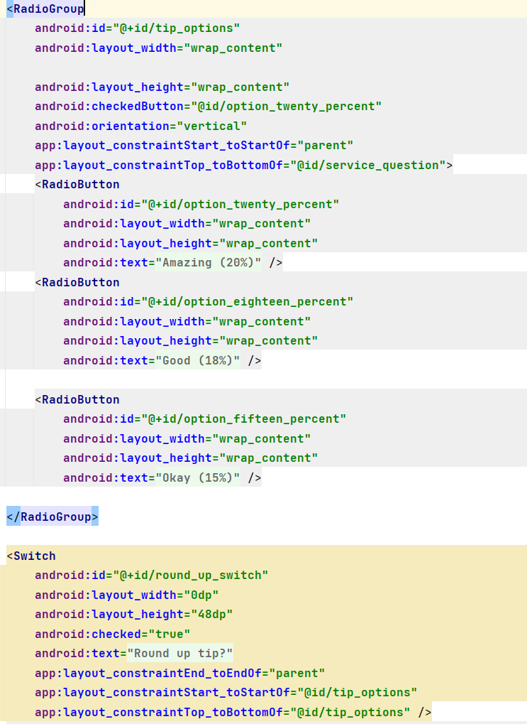 这个案例能学习到如何在xml对页面进行编辑,包括添加横向纵向约束等。并且Radio和switch组件在这个案例中首次使用。