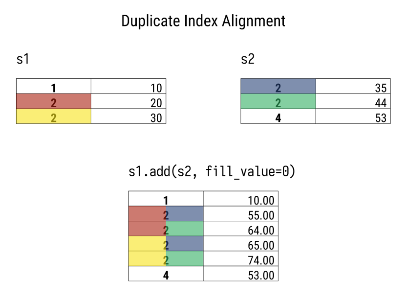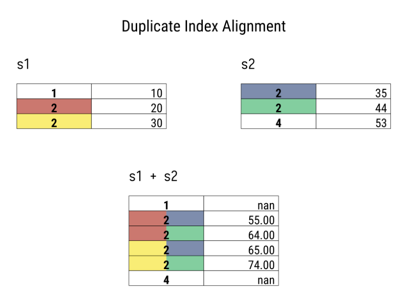 >>> s2 = pd.Series([35, 44, 53], index=[2,2,4], name='s2')