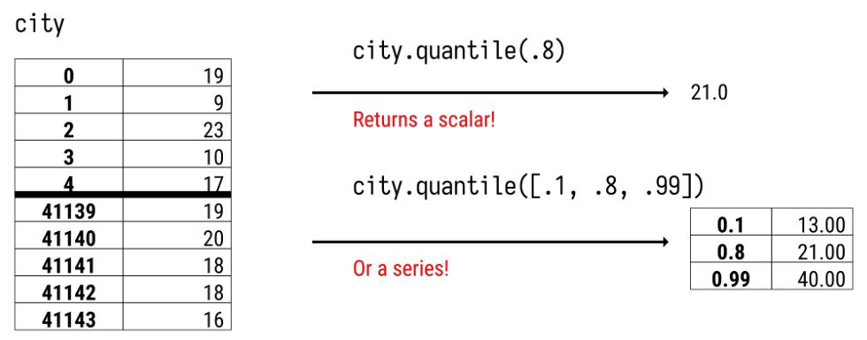 - 索引和访问方法及属性,如 .loc 和 .iloc。这些方法和属性可返回系列或标量。