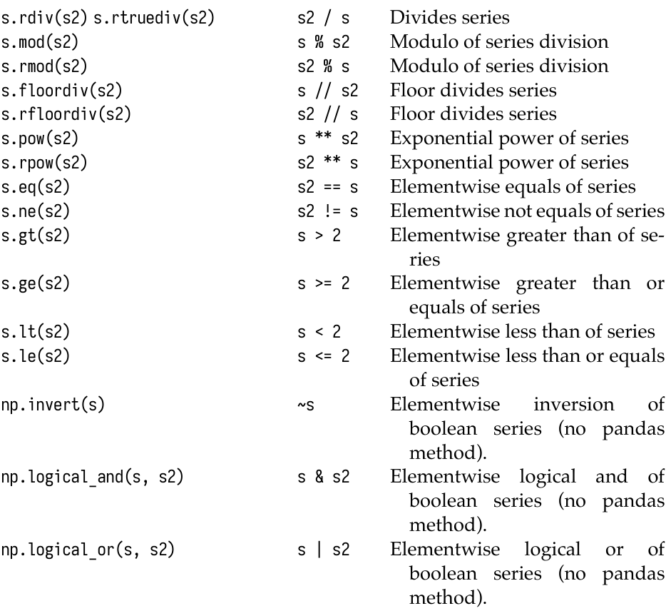 - Dunder 方法(.add、.iter 等)提供许多数值操作、循环、属性访问和索引访问。对于数字运算,这些方法返回系列。