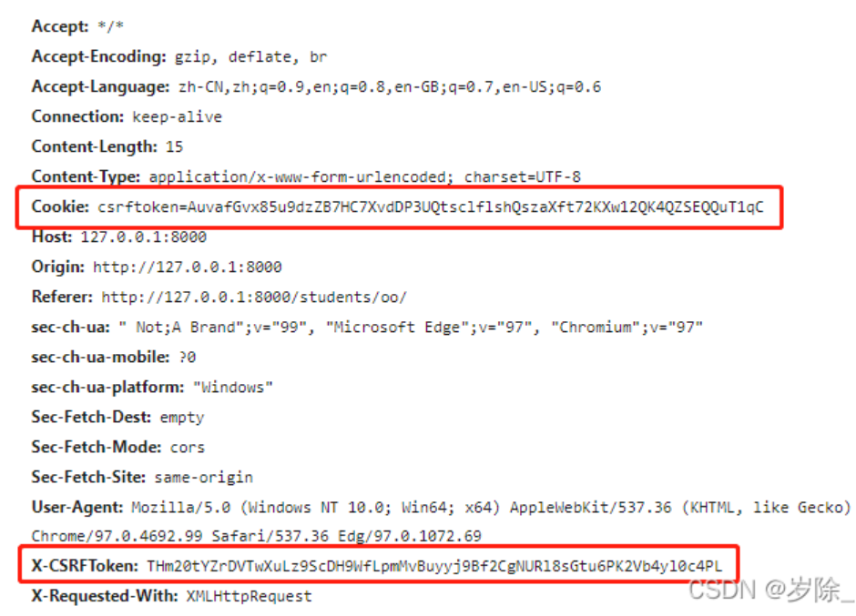 我们可以看到 cookie中的csrf-token和我们的token并不一样