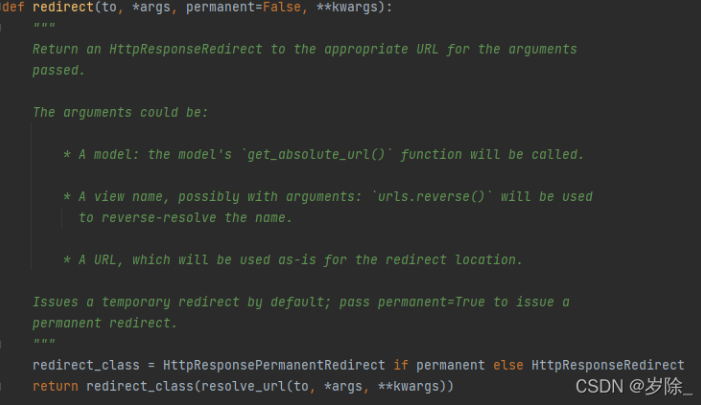 from django.urls import reversedef index(request): # 根据理由名称 得到url print(reverse("new-years-archie")) # 路由反转获取理由参数 print(reverse("new-years-archie",kwargs={"book_id":1})) # 如果是查询字符串的方式传参只能通过拼接 print(reverse("book_slug")+"?id=1") # 反转获得app中的url print(reverse("movie:movie_list")) return HttpResponse("ieo;fdjwqoief")args/kwargs传参,也相当于上面的路径拼接。