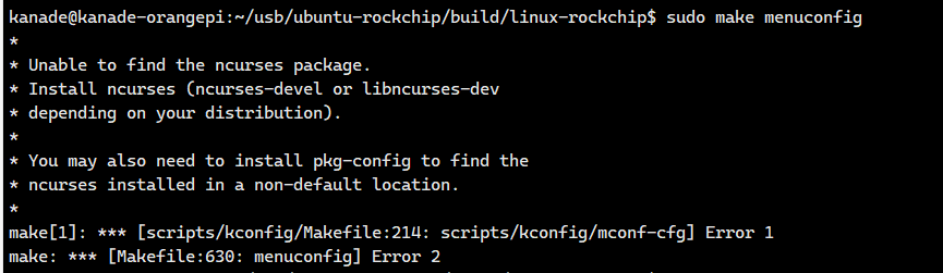 解决方法:sudo apt-get install libncurses5-dev libncursesw5-dev pkg-config