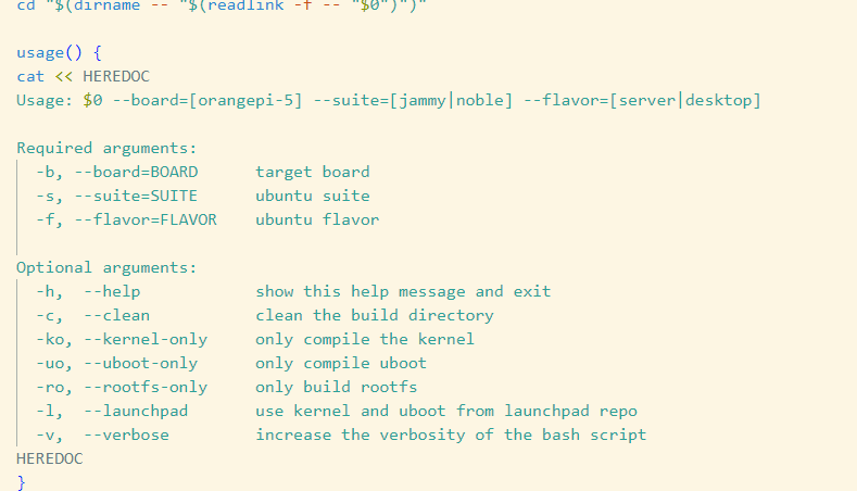 首先是一些帮助信息,比如--board指定设备,--suite指定系统版本,--flavor指定是否带桌面