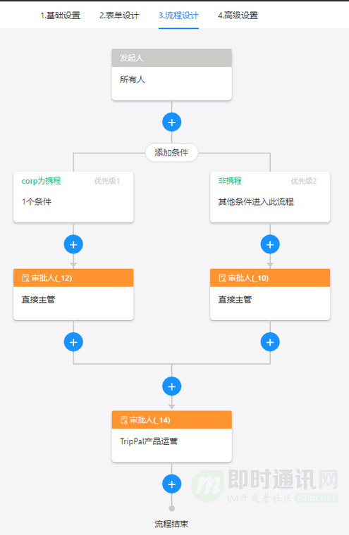 智能审批中台在集成携程自有的审批系统的同时也集成了自研的智能审批配置服务,该服务支持用户自定义整个审批单及审批流的全部细节。
