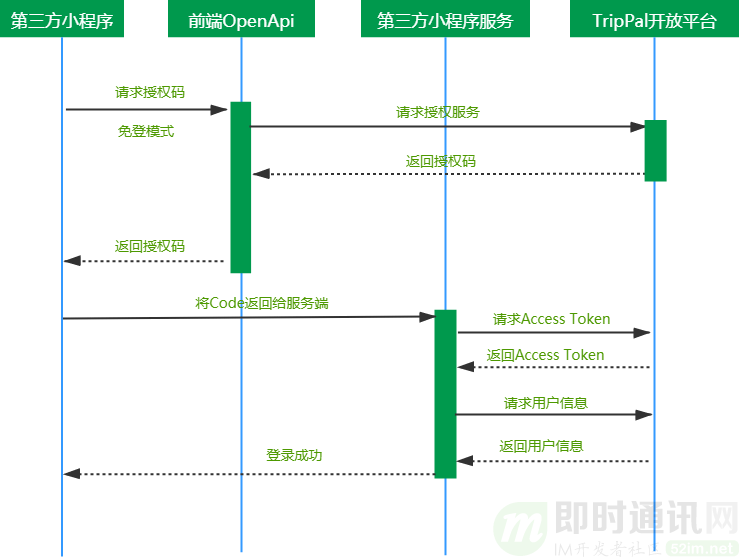 前端信任的目的是通过减少或杜绝开发者后端跟开放平台OpenAPI交互的方式,来降低开发者接入门槛,减少工作量。主要的做法是通过权限控制、签名、加密等手段使得小程序能够在前端拿到可信数据。