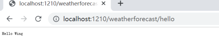 运行示例 1.2,浏览器访问 http://localhost:1210/weatherforecast/hello ,运行效果如下图: