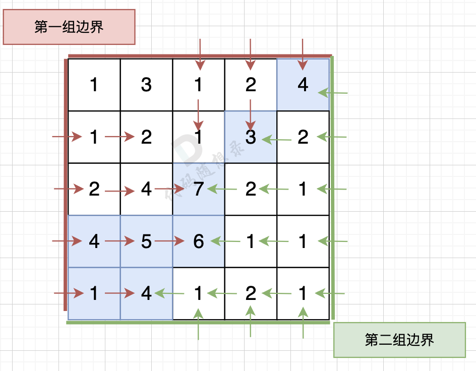- 先从网格的边界开始,使用