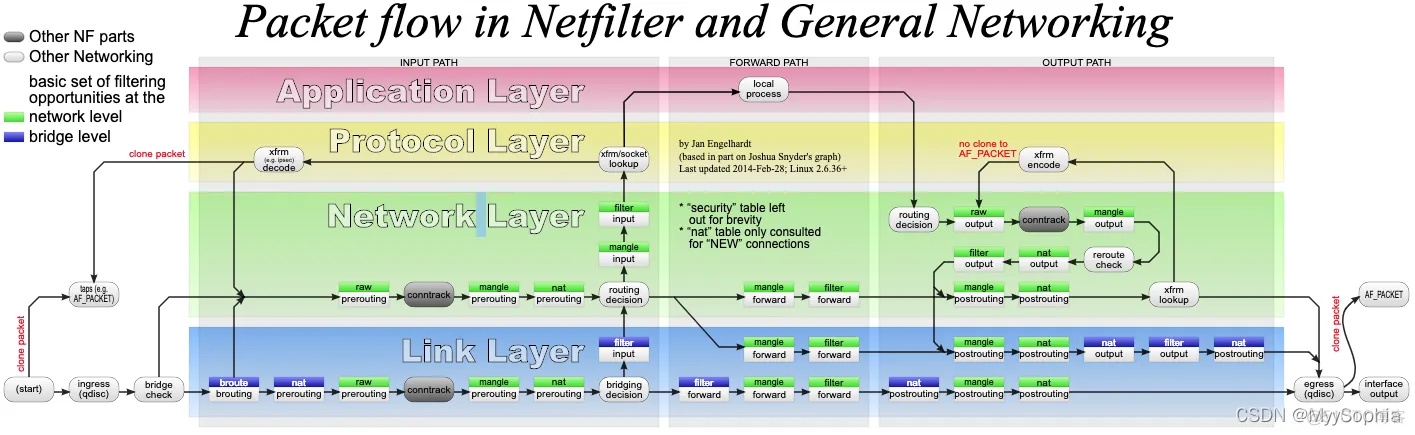 流出本机:用户空间进程 –>OUTPUT–> POSTROUTING