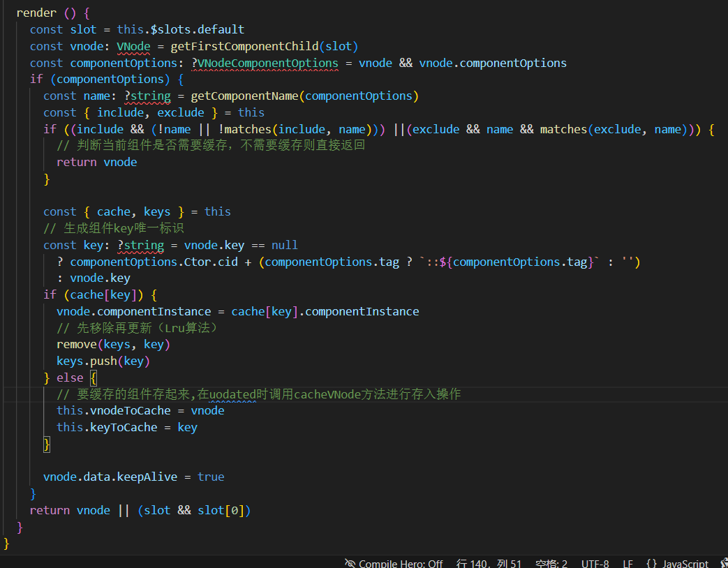 keep-alive核心就是将vue生成的vnode节点进行缓存处理。将include/exclude中满足的节点在cache中进行缓存,需要重新渲染的时候再取出并渲染。