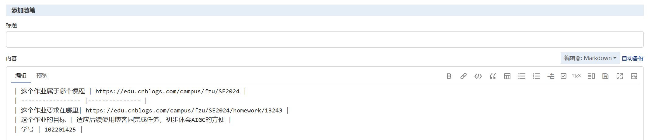 | 这个作业的目标 | 适应后续使用博客园完成任务,初步体会AIGC的方便 |