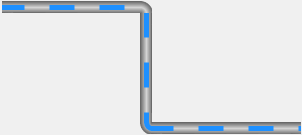 【管道分为左、中、右三部分。先画管道(矩形):左、中、右;再画流动条(虚线):左、中、右】