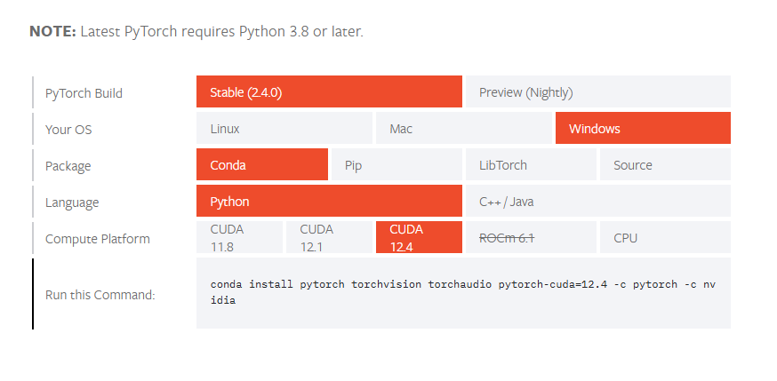 conda install pytorch torchvision torchaudio pytorch-cuda=12.4 -c pytorch -c nvidia
