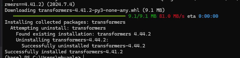 可能会自动安装最新版本的 transformers,会出问题,后面的章节讲述如何解决。