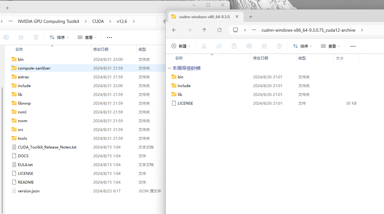 打开 C:\Program Files\NVIDIA GPU Computing Toolkit\CUDA\,找到版本目录,或者通过环境变量 CUDA_PATH 找到安装目录,将 cuDNN 压缩包的内容复制合并到 CUDA 目录。