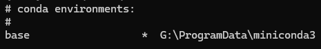 如果电脑已经安装过 Python 并且添加了环境变量,则不要将 G:\ProgramData\miniconda3 添加到环境变量中,因为这样会导致环境缭乱。