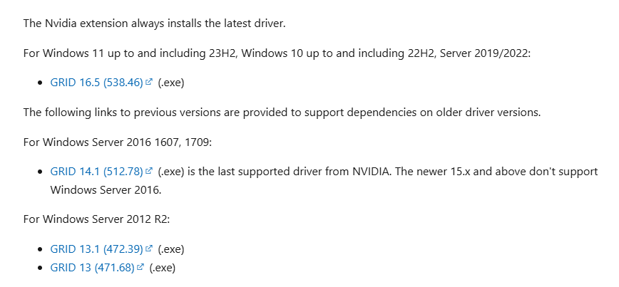 Windows 可参考该链接安装:https://learn.microsoft.com/zh-CN/azure/virtual-machines/windows/n-series-driver-setup