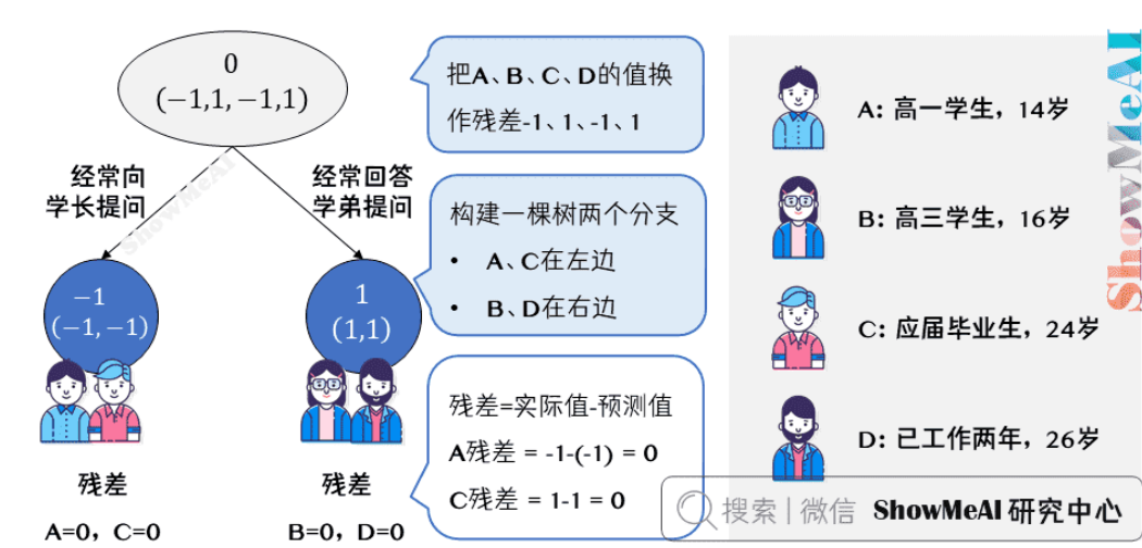 上图中的树就是残差学习的过程了,里面提问和回答同样也只是例子: