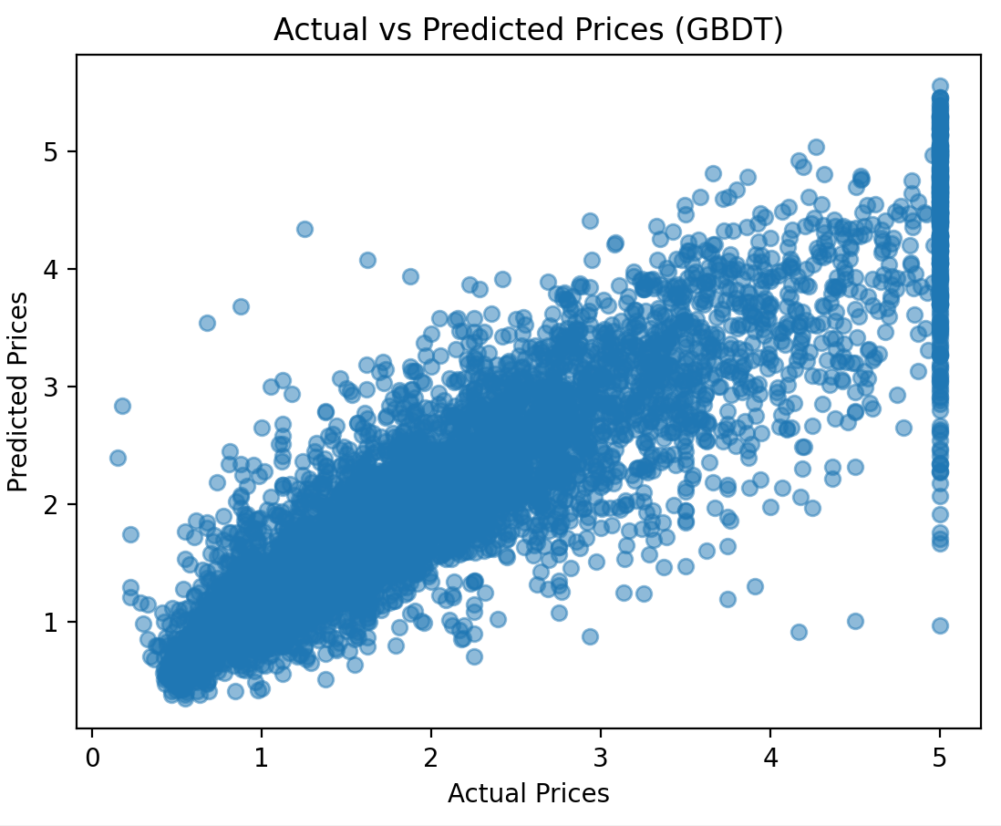 # 7. 可视化GBDT的预测结果(实际值 vs. 预测值)