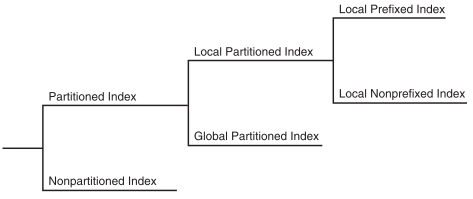 分区索引是一种像分区表一样被分解成更小、更易于管理的部分的索引。全局索引与它们所创建的表独立分区,而本地索引则自动与表的分区方法相关联。像分区表一样,分区索引提高了可管理性、可用性、性能和可扩展性。下图显示了索引分区选项。