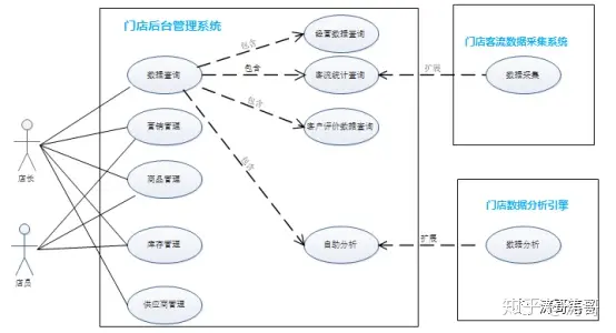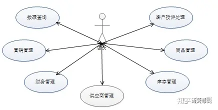 其中用例图用于从用户角度描述系统功能,指出各个功能的操作者(角色),本例中操作者包含店长和店员,其中店长涉及的操作功能如图: