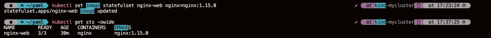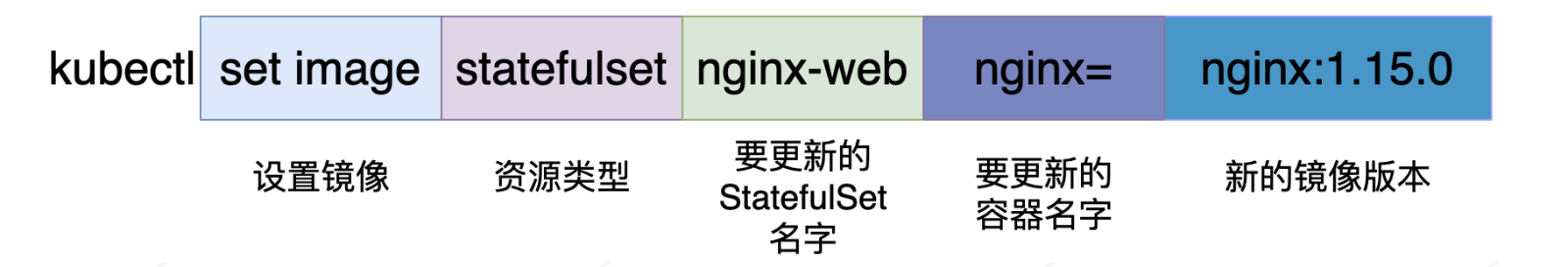 kubectl set image statefulset nginx-web nginx=nginx:1.15.0