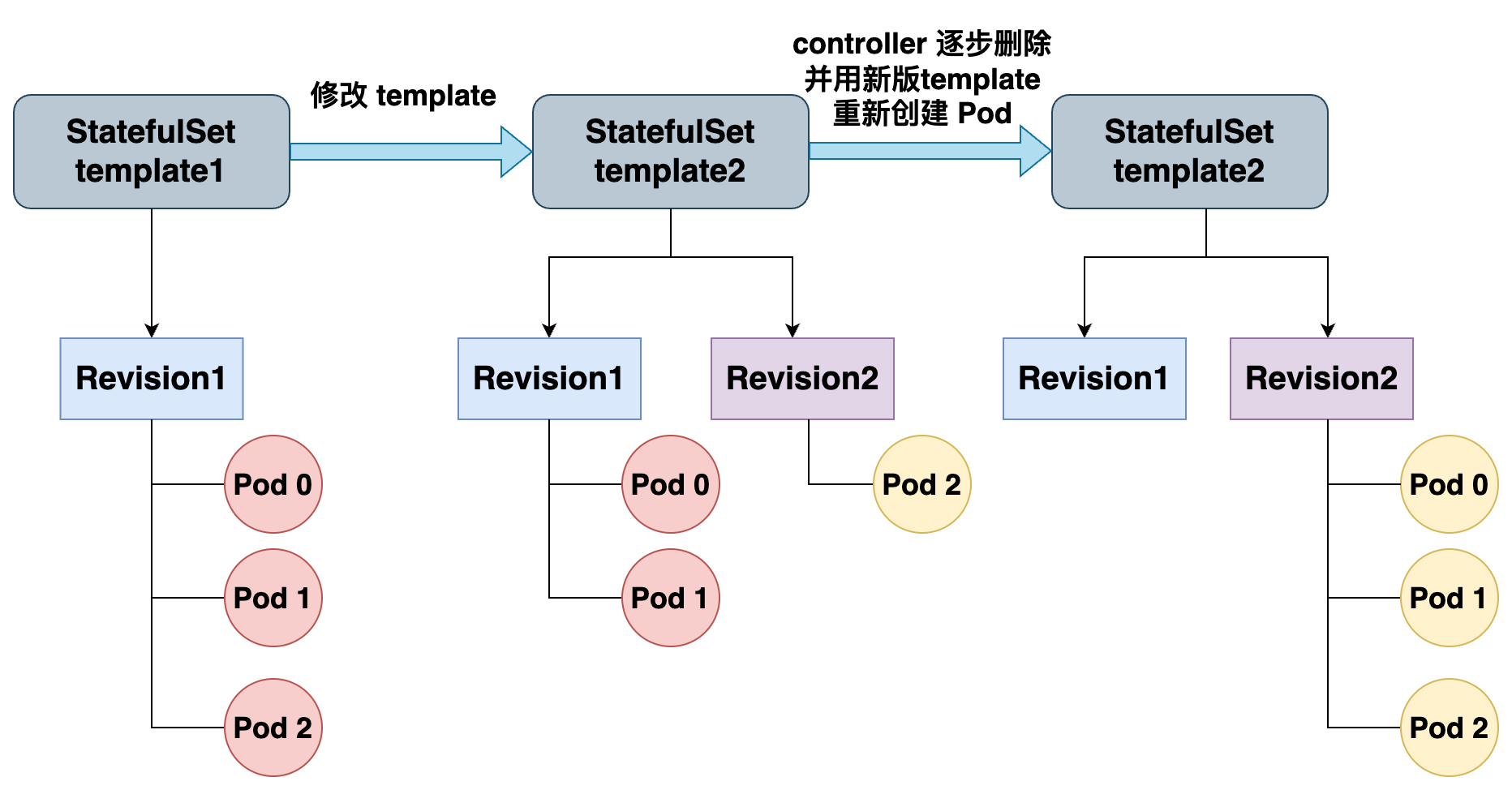 通过这个资源,StatefulSet 可以很方便地管理不同版本的 template 模板。