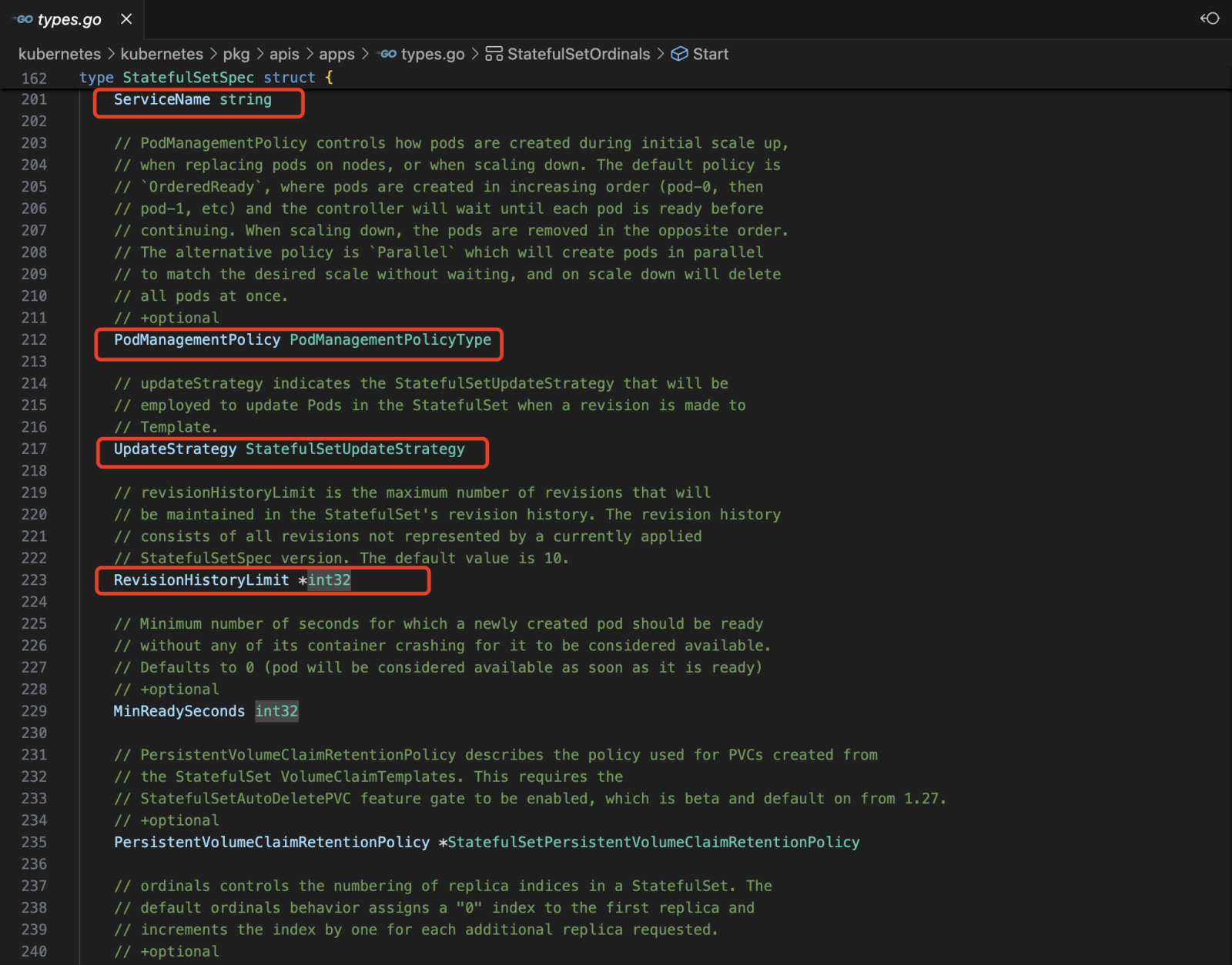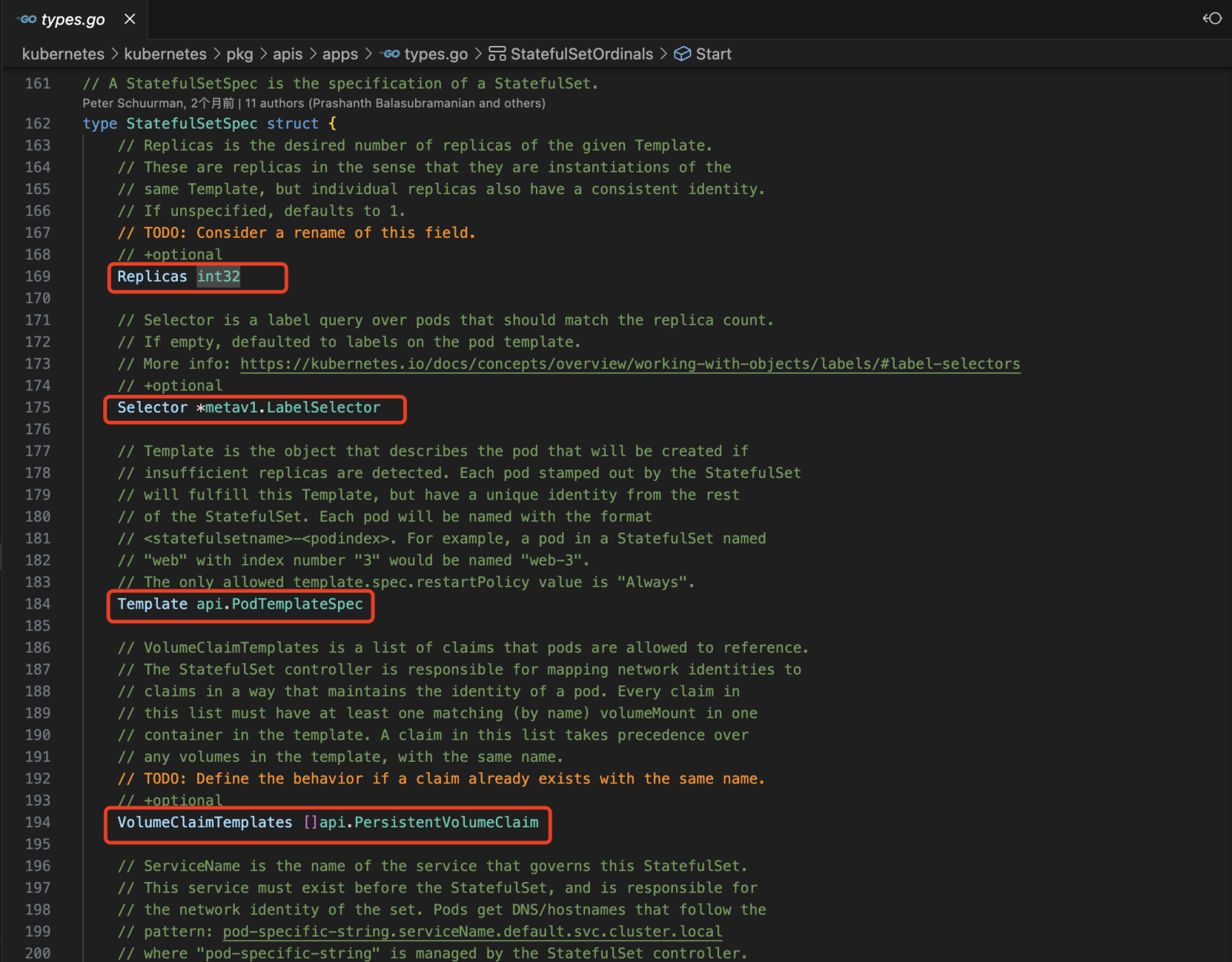 通过在 StatefulSet 的 status 中看到的数据,这里有几个重要的字段:
