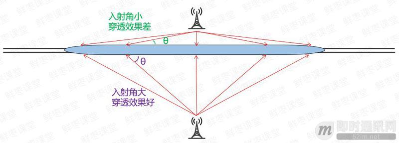 架设基站,是不是离列车越近越好呢?并不是,离得越远,信号的入射角越大,穿透损耗越小。垂直入射时,损耗最小。