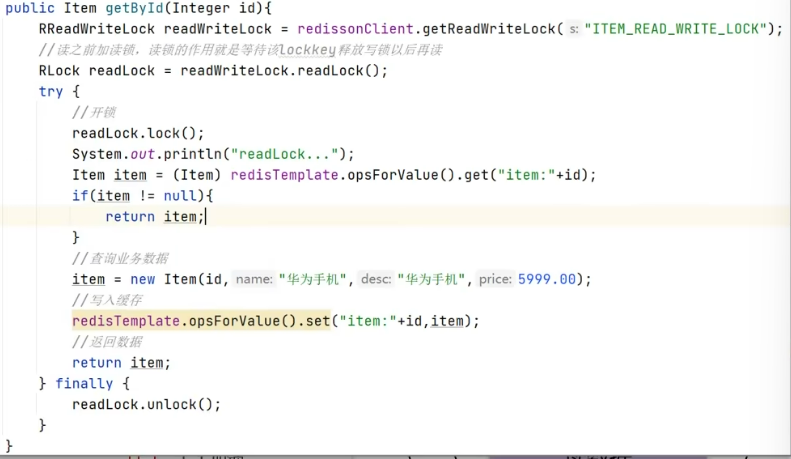 一般存入缓存的数据都是读多写少,用读写锁来进行控制