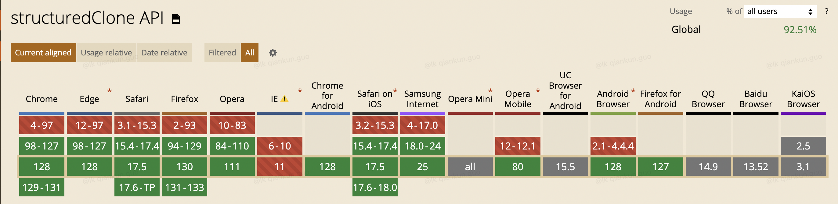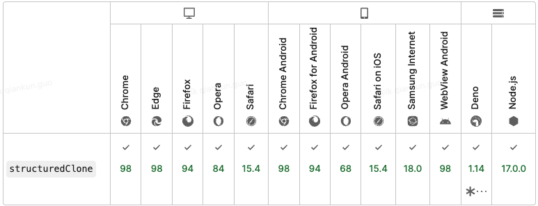 从上面的示例中能看出,structuredClone 支持了很多中数据类型,基本类型和普通对象都支持