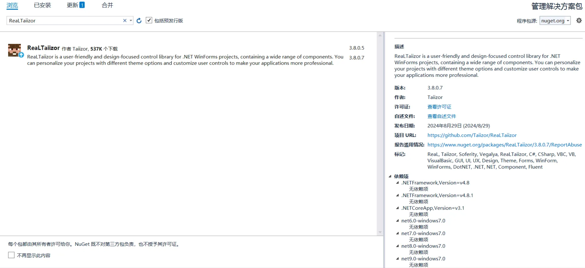 1、添加对 ReaLTaiizor 的引用,或在 NuGet 上搜索 ReaLTaiizor;
