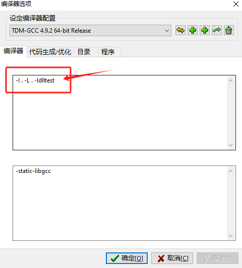 如果觉得用命令行编译太麻烦,可以将-I -L和-l加入Dev-C++的编译器选项中。