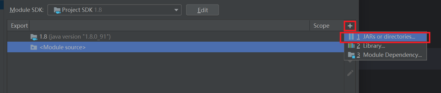 - 点击左侧+号,选择 JARS or directories